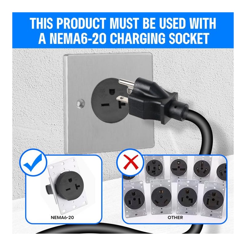 - 📱Smart Charging with Plug-and-Play Convenience: Designed for easy installation with a NEMA 6-20 plug, this charger requires no complicated wiring. Its compact and portable design makes it ideal for home charging, RV parks, or on-the-go use. Get reliable charging anytime, anywhere!