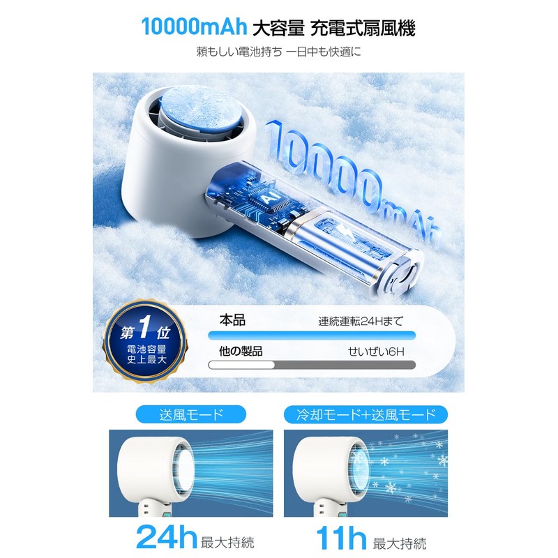 - The handheld fan has built-in 10000mAh battery and can be charged easily and efficiently with a Type-C cable. Super durable, up to 24+ hours of continuous operation on a full charge, chase heat for you anytime, anywhere
