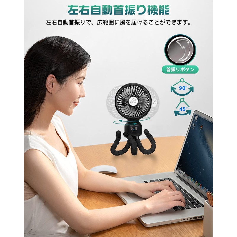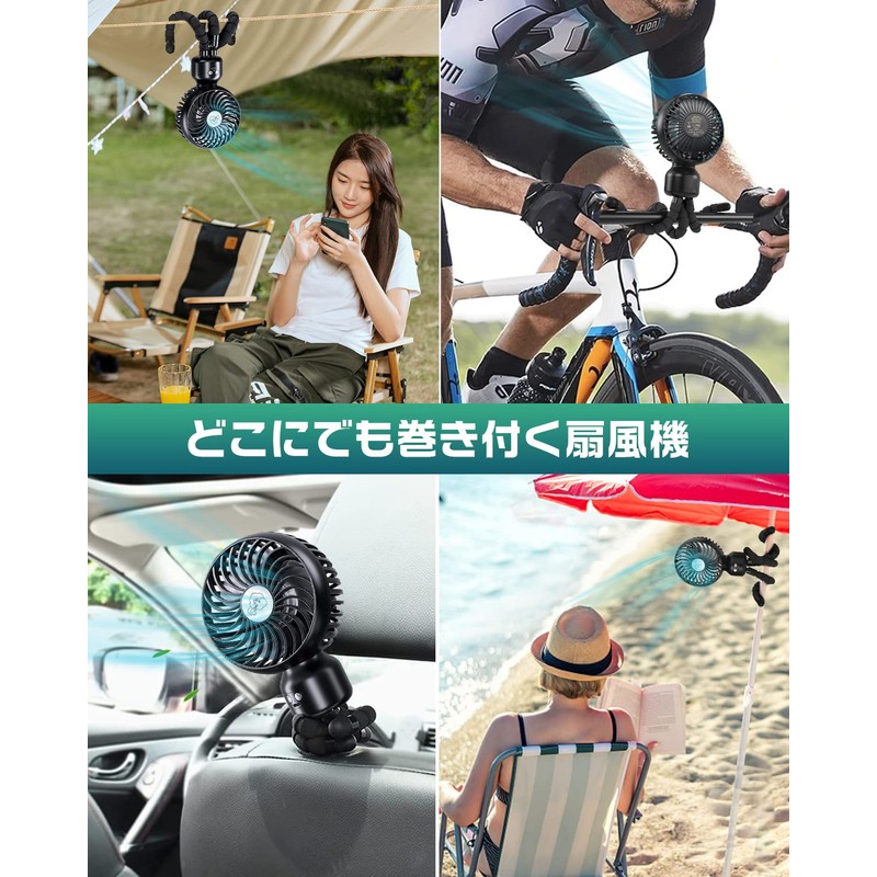 - (Portable Fan That Can Be Used Anywhere) Unlike traditional portable fans, it has a design like Octopus legs, and is soft and can be wrapped around freely Suitable for tabletop, hanging, handy, and wrap-around, it can be used anywhere such as a table or as a sleeping bed, car seat or tent