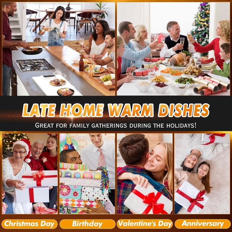 - Intimate 2 cm Anti-Scald Design on The Edge: Food warmers consider that the outer edge of the insulation plate is easy to touch, and specially tailors the outer 2cm area not to heat for customers, preventing family members from being burned by high temperatures, and making people feel more at ease when using it.