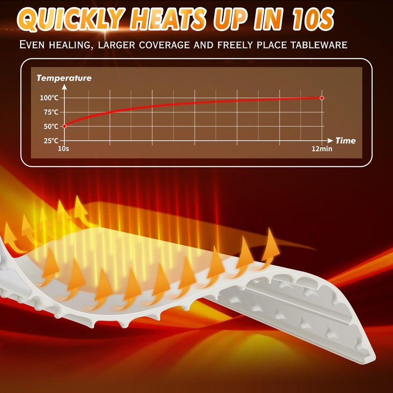 - Rapid Full-Surface Heating: Experience rapid and uniform warming across a large heating area. Utilizing rapid stereo heat transfer technology, it swiftly achieves the perfect temperature. Our LOQOMI thoughtfully designed heating wire ensures quick and even distribution, allowing you to arrange your tableware freely.
