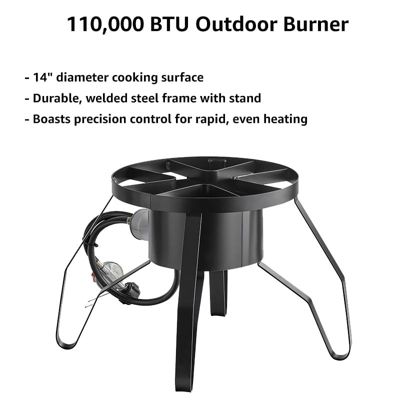 Equipped with a precision adjustable 10 PSI regulator with a 36" rubber hose, this stove provides you with greater control over the flame for advanced flexibility. Great for deep frying a turkey or steaming clams or vegetables, you can control the flame to perfectly prepare each recipe.