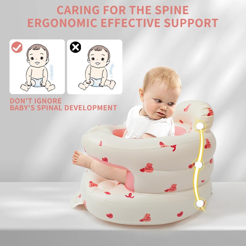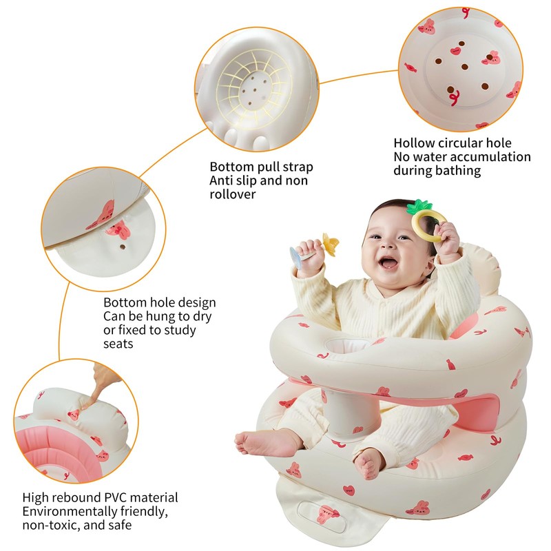 - Safe & Comfortable for Prolonged Use:Made from 100% non-toxic PVC, this baby seat creates a safe and healthy environment for your little one. The breathable vents on the seat bottom help to prevent overheating, while the soft-touch material and ergonomic design ensure maximum comfort during extended periods of sitting. The protective fence adds an extra layer of security, keeping your baby safely supported as they learn to sit up.