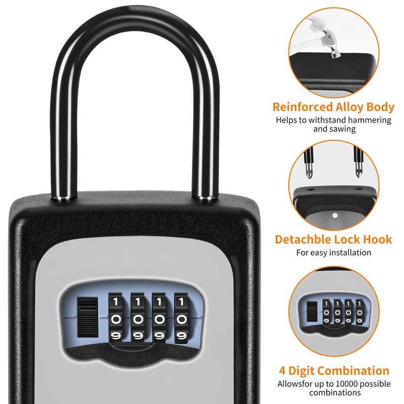 The 4-digit combination provides 10,000 unique choices, which makes the key storage box have high security for protect your keys.