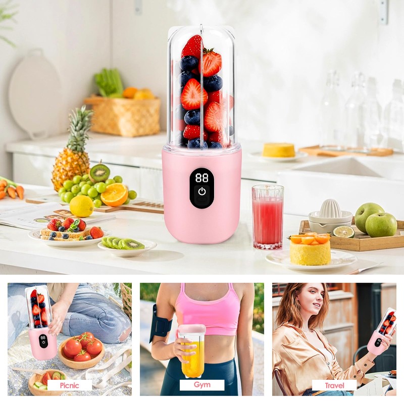 - 【Great Gift】 Portable blender comes with a detachable juice cup, a carrying ring and an extra bottom cover. You can replace the bottom cover after blending to turn it into a water bottle for easy carrying. Perfect for indoor and outdoor use, such as at office, home, gym, outdoor running, camping and traveling. The portable blender is the perfect gift choice. Bring joy and healthy drinks to your loved ones. Enjoy fresh nutrition and a relaxing time.