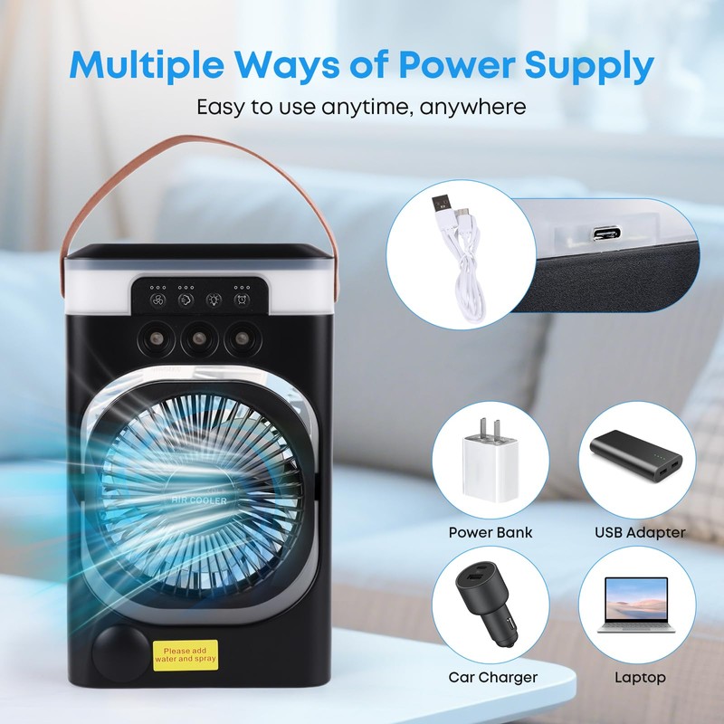 - Compact & Lightweight: Fits easily in your bag or on your desk.the Air cooler fan is designed for personal use only and doesn't cool room.
