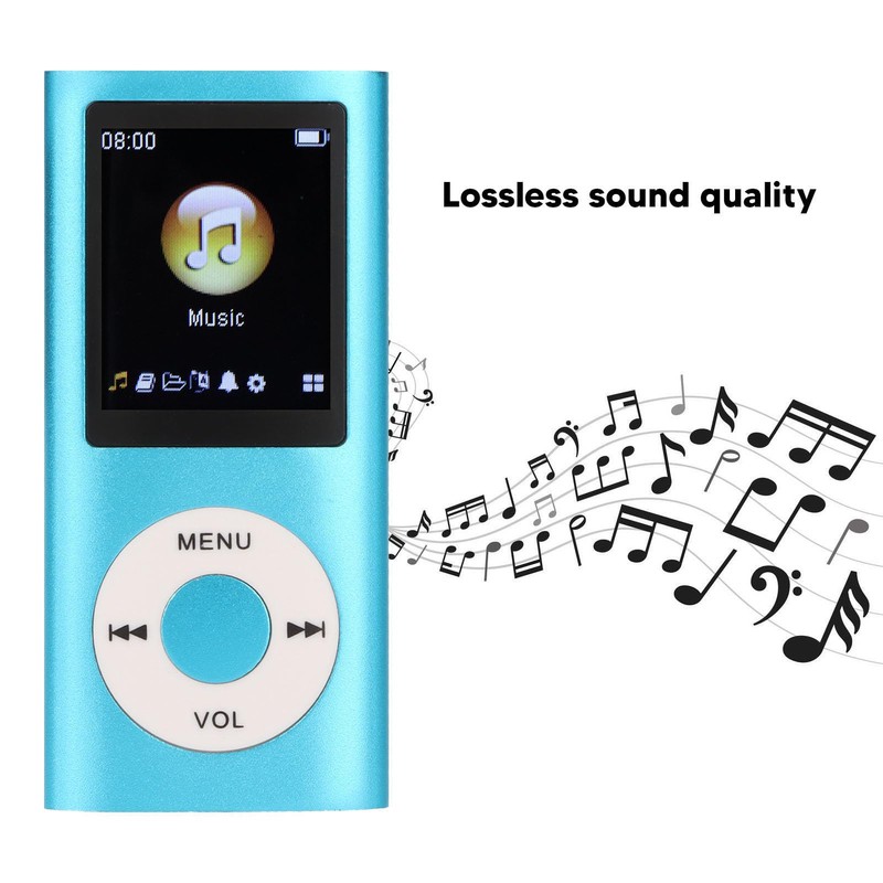 Portable MP3 Player Compact Design 1.8 Inch LCD High Fidelity Sound Music Player Digital Audio Device Metal Body Storage Support (Blue)