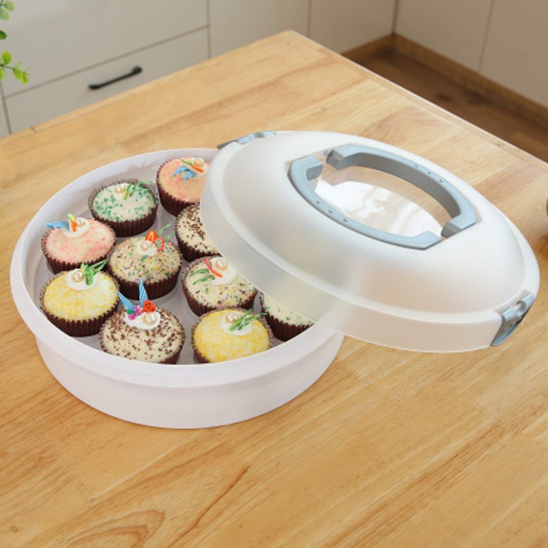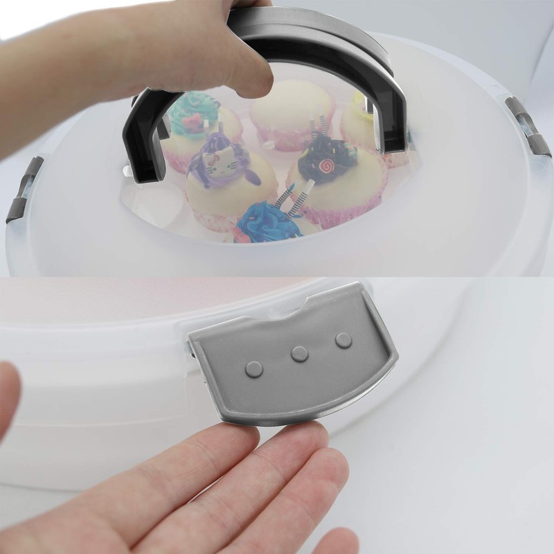 Made of high quality plastic which is safe to storage food,Includes removable cupcake tray