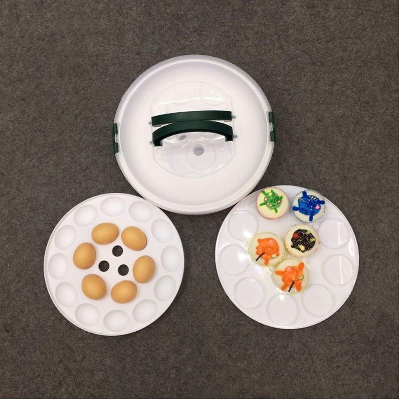 - Feature: Comes with durable collapsible handles and sturdy clamps for safe easy transporting and carrying.Contains a removable cupcake tray and egg tray for meeting you diversified storage needs,easy to clean.