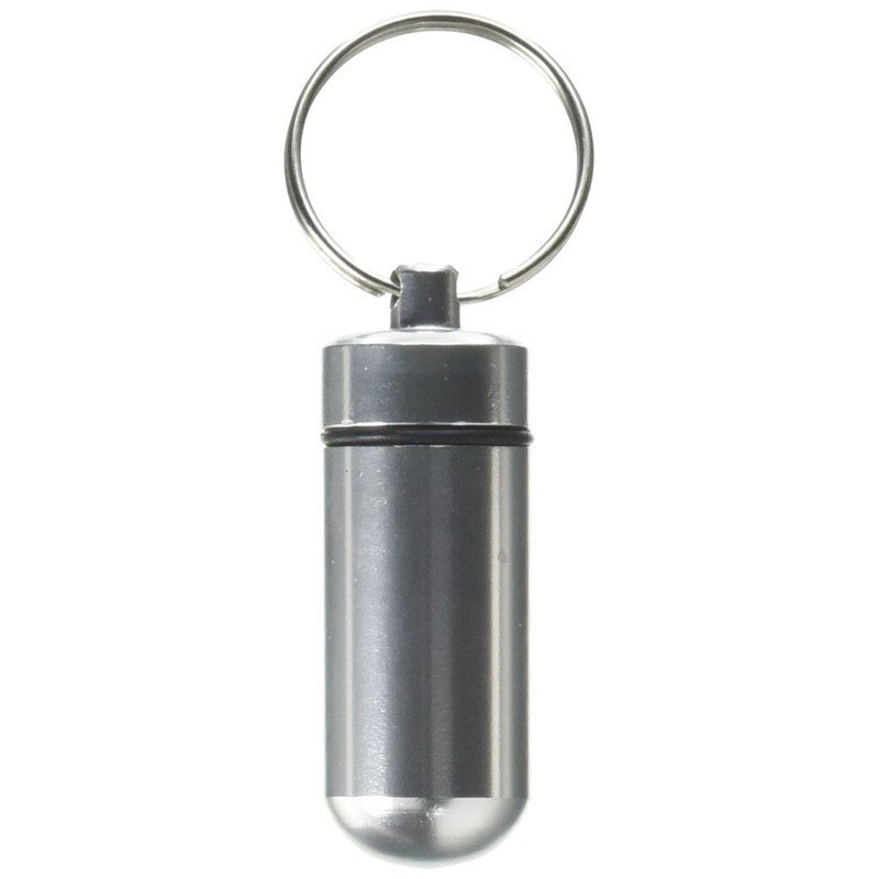 Key Chain and Heavy Duty Heavy Duty Alloy Pill FOB Each pill container has a threaded cap with a rubber O-ring seal to maintain airtight and water-free medications. Pill FOB is perfect for holding pills, aspirin, vitamins, and pills that need to be shot during the day.