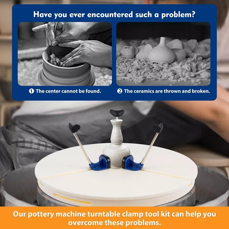 We've all been there! Whether you're a novice or a master, we've all had that frustrating moment when we can't find the center point when repairing ceramics. And we've all had those moments when our ceramics get thrown and broken because we lack a stable hold. Well, we've got just the tool for you! Our pottery machine turntable clamp is here to help. It's ideal for trimming smooth artwork, firmly fixing multiple heights of ceramics, and finishing ceramic trimming work quickly. So, go ahead and give it a try!