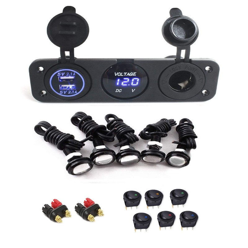 - Dual USB Charging Ports and Voltmeter / 12V Cig Output Socket