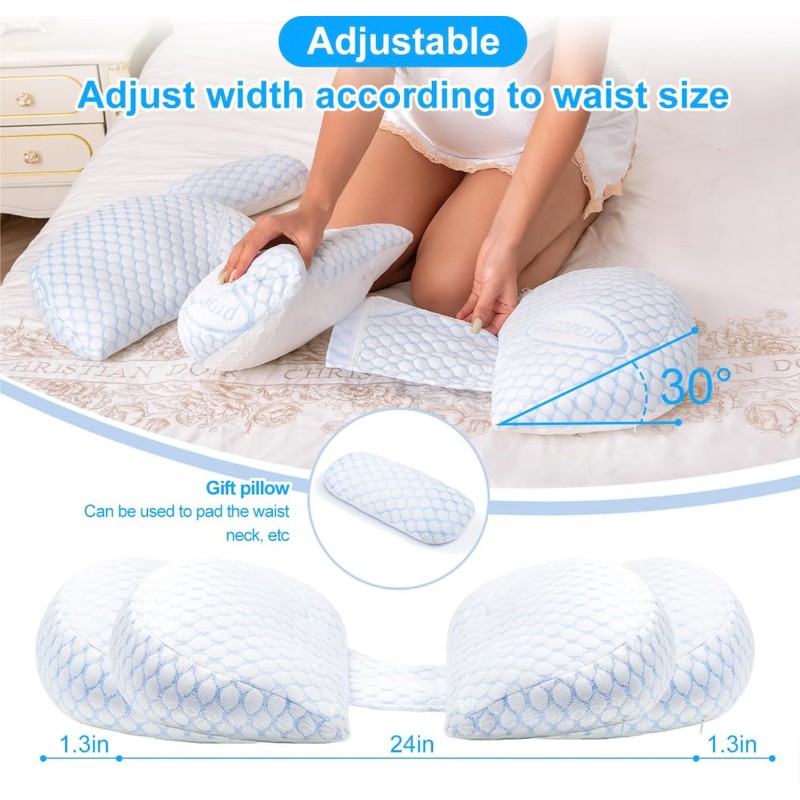 - Featuring a flexible belly wedge, our side sleeper pillow includes adjustable Velcro that accommodates all trimesters and body types. The innovative 30° slope design allows for a closer fit to your body curves, providing stable support for the abdomen and improving comfort throughout your pregnancy