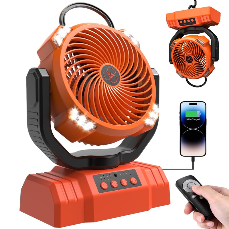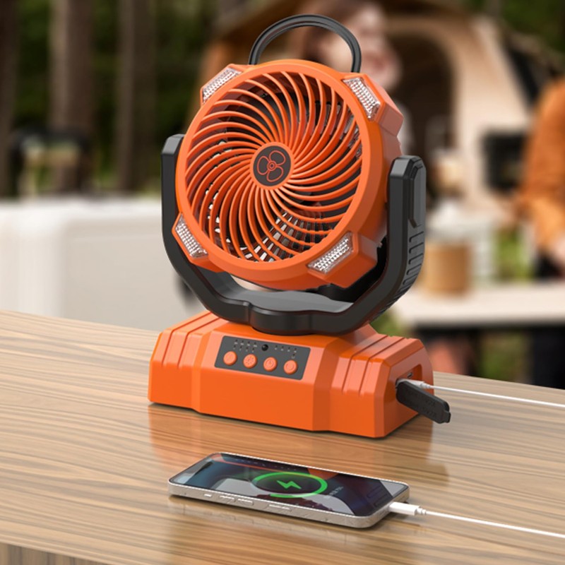 • 【Lasting Endurance, Excellent Performance】The rechargeable camping fan is powered by a 10000 mAh high performance battery, the compact and powerful cordless fan keeps the air circulating for up to 36 hours at low wind speeds, perfect for camping trips, fishing, outdoor sports, and accidental power outages, this USB personal fan also supports charging your cell phone and can work while charging.