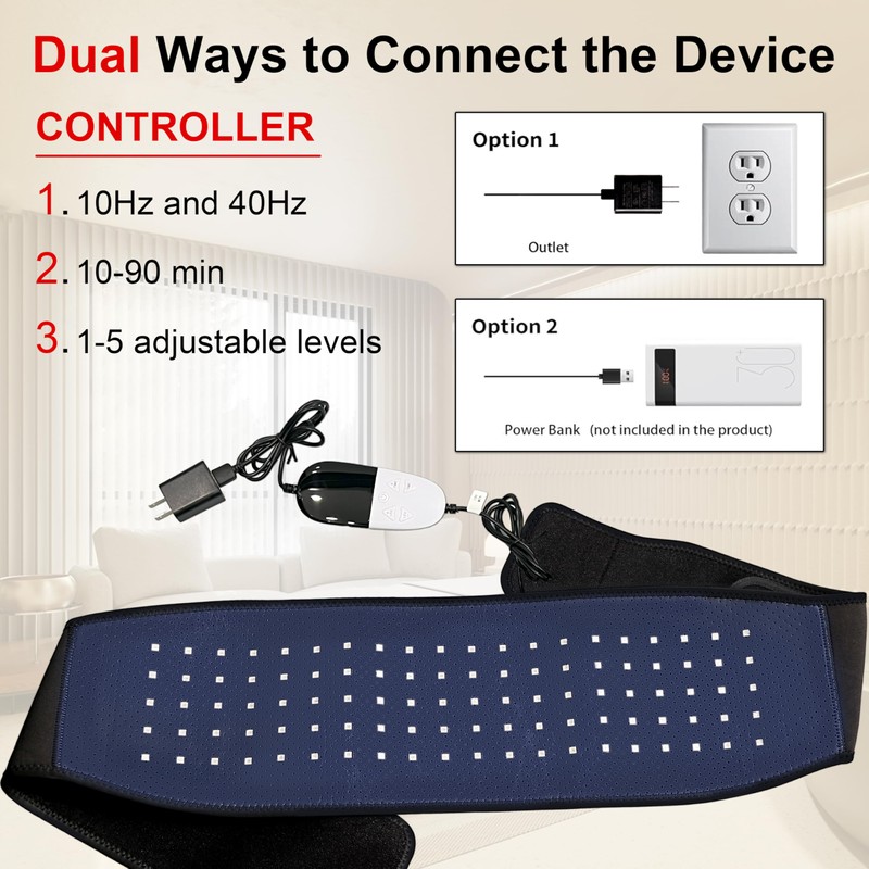 • USB-Compatible Controller: Equipped with a USB-powered controller, the belt connects effortlessly to any USB-compatible device, offering a convenient and portable solution for red light therapy wherever you are