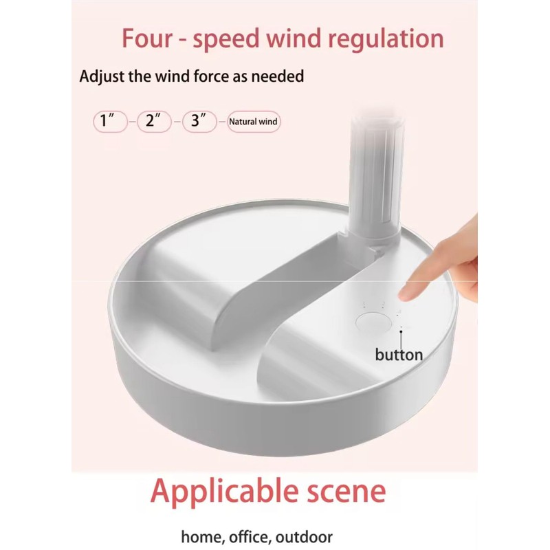 Portable Retractable Fan – USB Rechargeable, Quiet Floor & Desk Fan, 4 Speeds, Foldable, Long Battery Life (7–24 Hours), White
