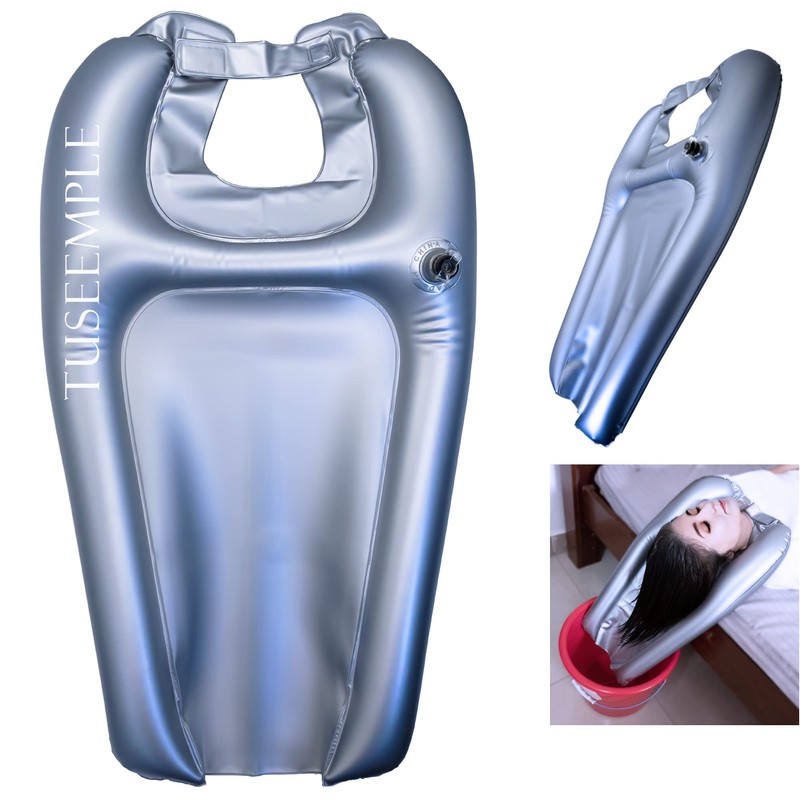 - The Delicate Hair Washing Tray Is Easy To Carry - It is made of high quality PVC friendly material that is very soft and smooth to the touch; the inflatable basin for washing hair is actually a tray that directs water away from the head and into any kind of sink or bucket. The inflatable design means it can be deflated when not in use. It can be folded up nicely to save space and wait for the next use.