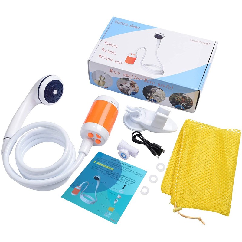 Portable electric shower can be used for indoor/outdoor shower, pet bath, outdoor car washing, plant watering etc. Necessary for home or travel.