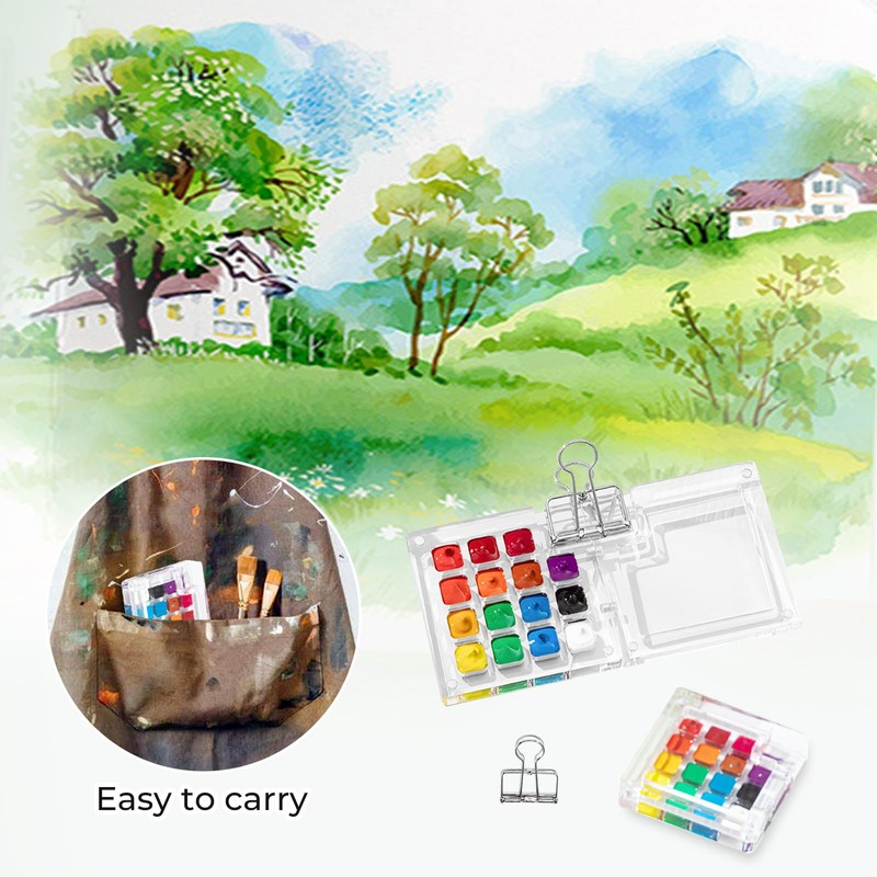 Portable sketchbook palette set, 15 grids mini acrylic travel painting palette painting box colour palette acrylic paints