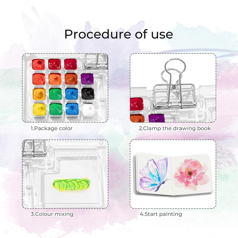 - COMFORTABLE MAGNETIC PALETTE BOX The innovative magnetic design ensures your watercolor pans stay securely in place, prevents spills and allows for easy rearrangement. With a clip attached to the palette, you can easily open and attach the sketchbook.