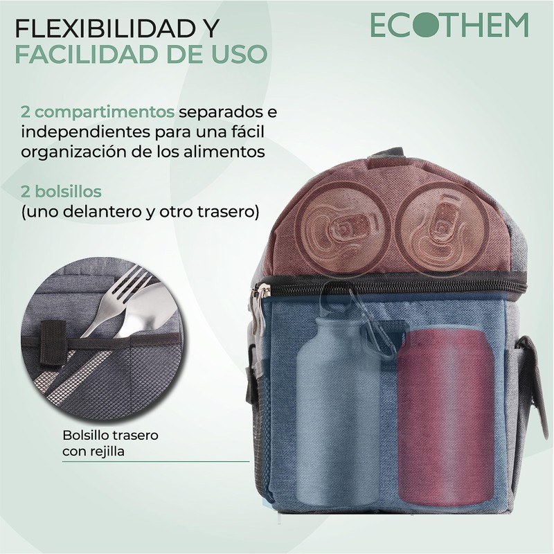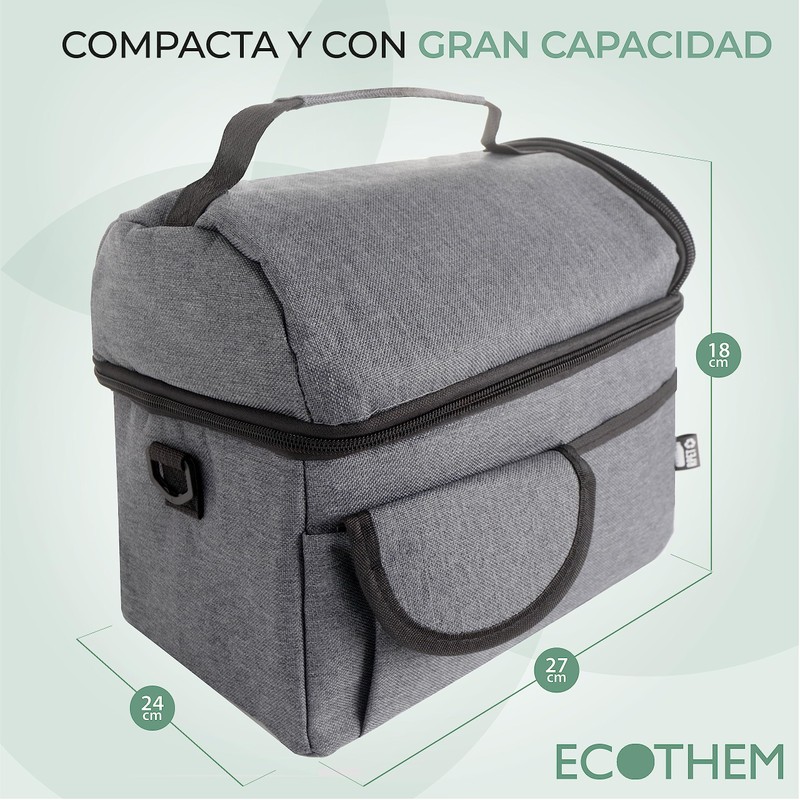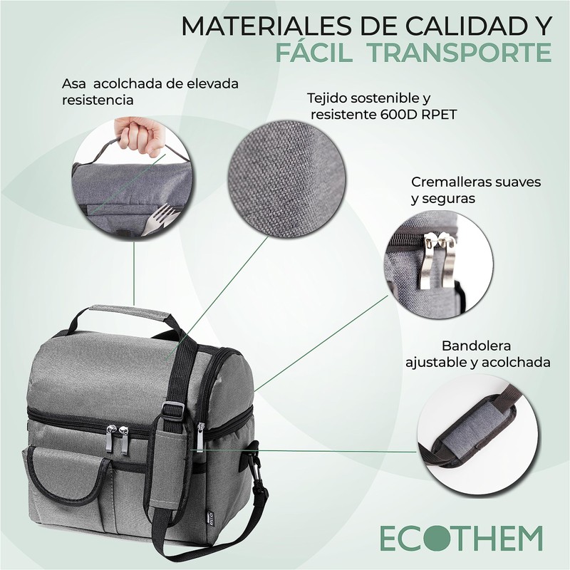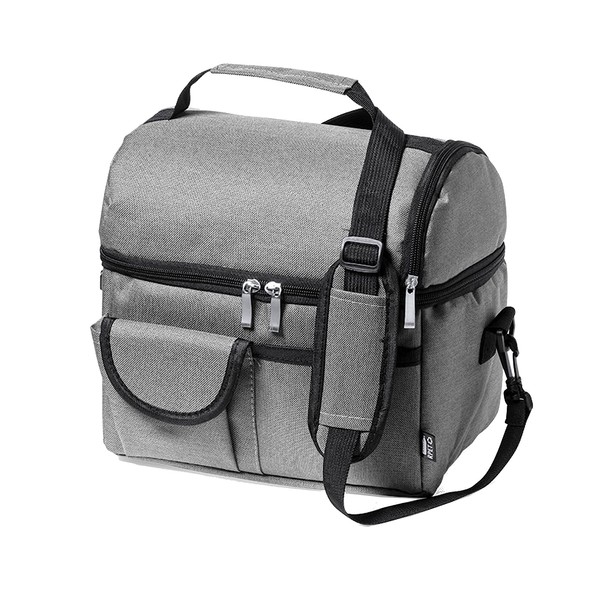 This portable cooler is the perfect choice for those who need to keep their food and drinks fresh and at the right temperature while on the go. With its high quality features and functional design. The durable zipper and metal handles ensure a secure closure and easy access to your food and drinks. You don't have to worry about leaks or lose the freshness of your products. Lunch box for work, ideal for everyday use, prepare fresh food and drinks and enjoy them in the rest time. You can pack everything you need in everyday life, easy to clean with the lined interior. Like beach bag, this mini fridge but spacious inside, allows you to place ice plates on the base to keep in direct sunlight and keep the interior cool. This small PEVA cooler is the perfect accessory to keep your food and drinks cool during your outdoor activities. The functional design, separate compartments, secure closure and additional pockets are the standard in an essential choice for lovers of adventures and outdoor trips. Cool box made of durable 600D RPET, the RPET material is made from recycled plastic to promote the reuse of plastic waste and support the sustainability of the planet.