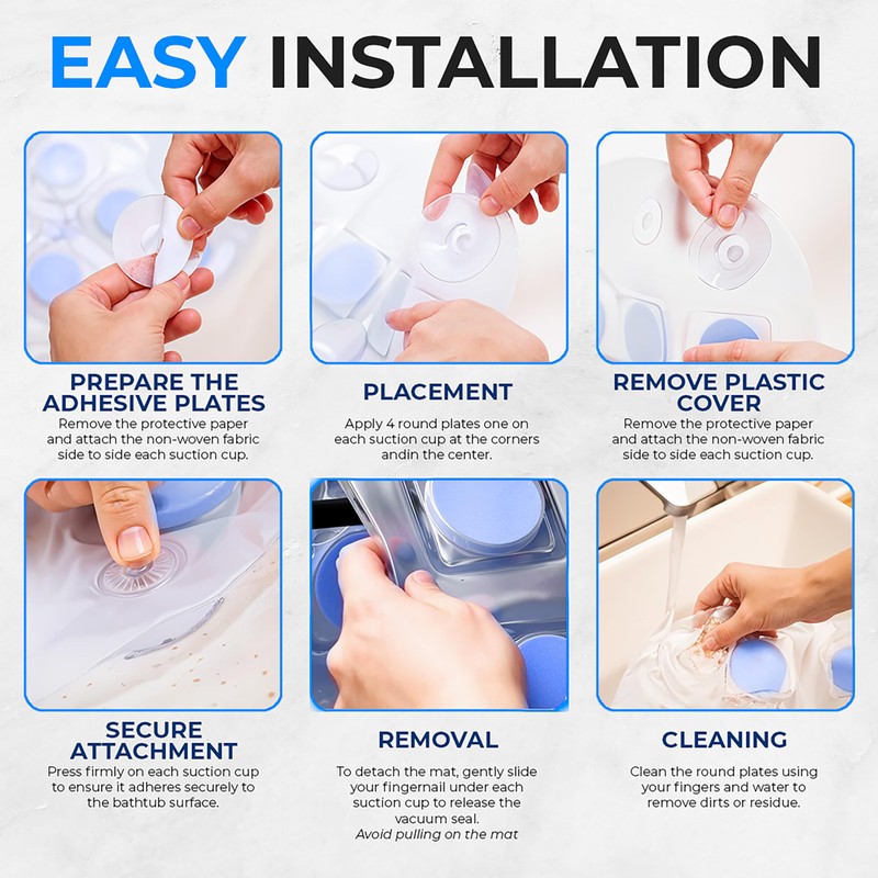 - NON-SLIP & WATERPROOF. The bubble bath tub mat was designed to lay on the bathtub floor, featuring a suction cup bottom. The spa bath mat is also 100% waterproof & made of non-abrasive water-safe material
