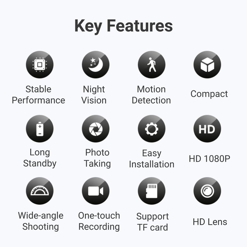 - [LONG LASTING USE] - Equipped with a 200mAh battery, this security camera can last up to 50 minutes. It can also be connected to a 10000mAh battery pack (not included) for a recording time of up to 30 hours.