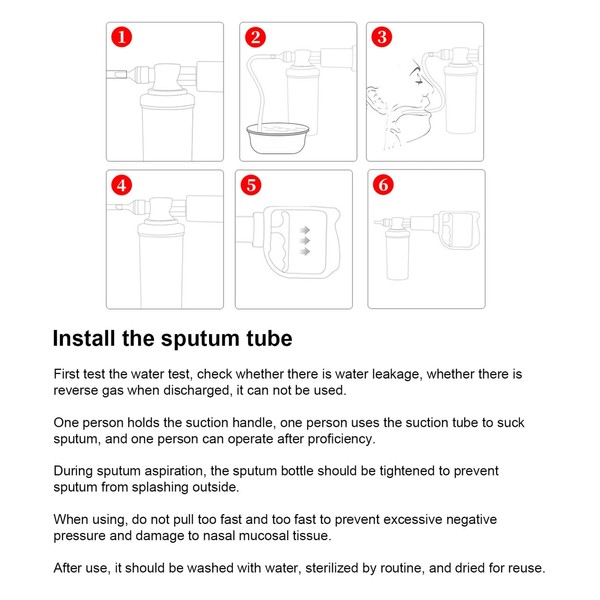 - Handheld design: the sputum extractor device has a portable design that is easy to use, no power supply, no noise and no environmental restrictions.