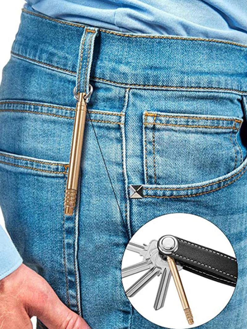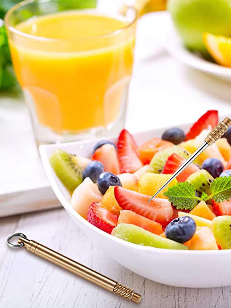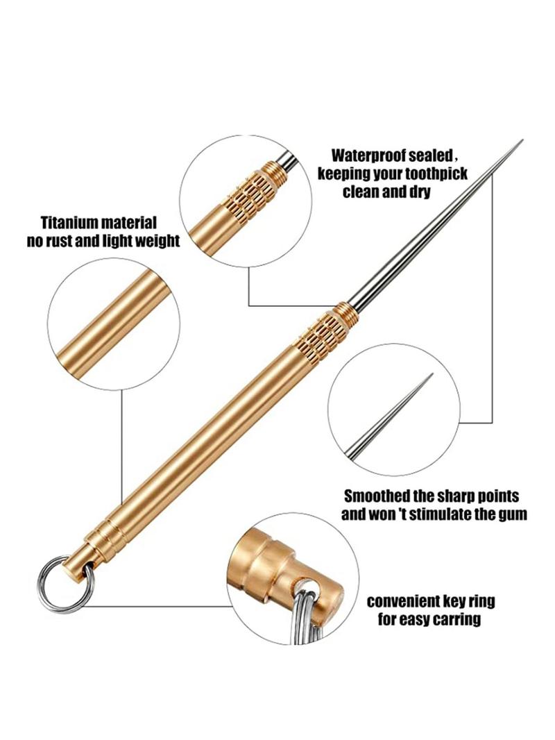 Portable Titanium Toothpicks, Fall Pocket Toothpicks Keychain, Brass Toothpick Holder for Picnic Camping Accessories, Trendy Exquisite Keychain for Birthday Gift