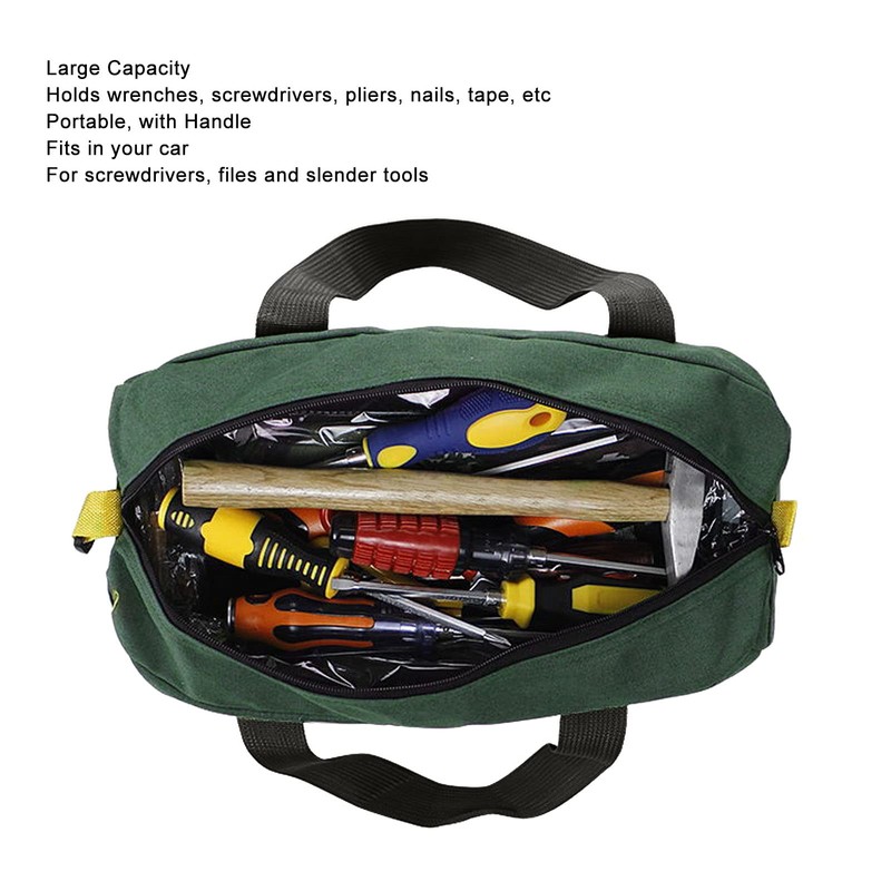 • EASY TO REACH The hardware tool organizer features a large extended zipper and wide opening, so you can easily see and access the tools you need. There is only one place to store large capacity tools and space for wrenches/screwdrivers/pliers/nails/tape and other items. Easy access to store the tools you need.