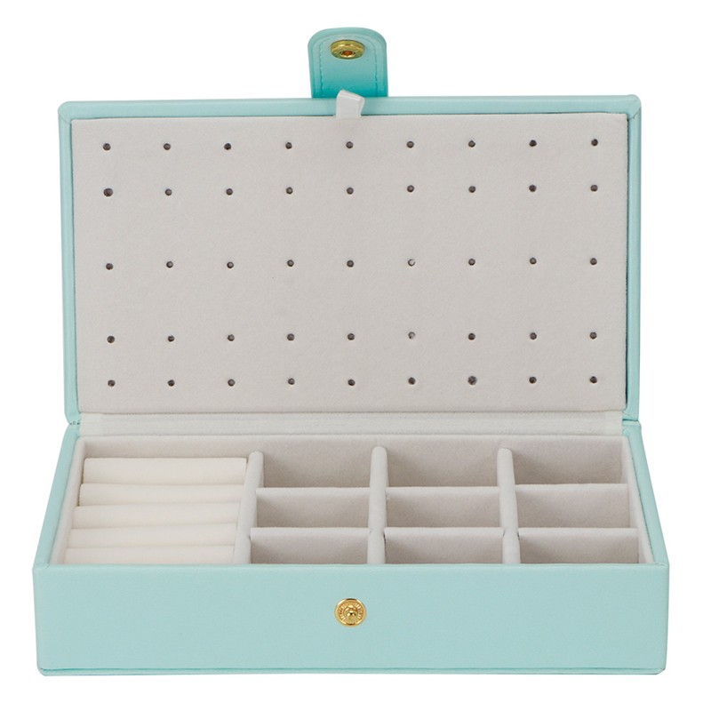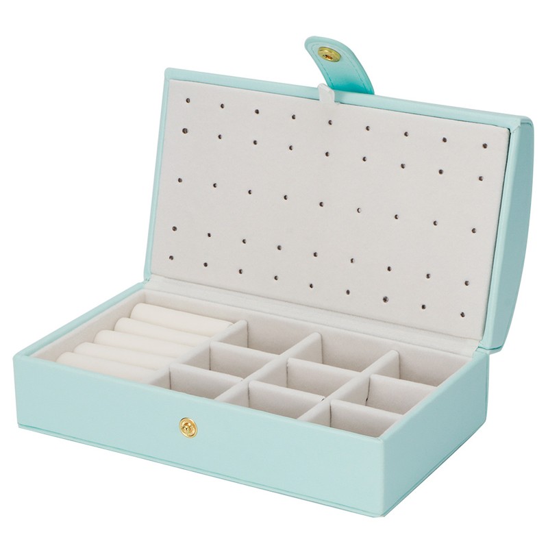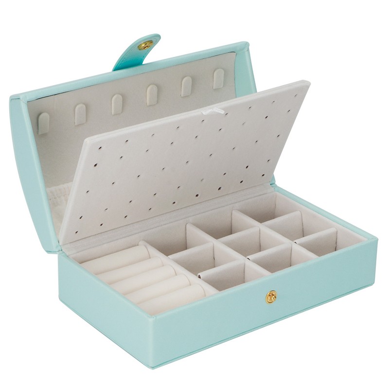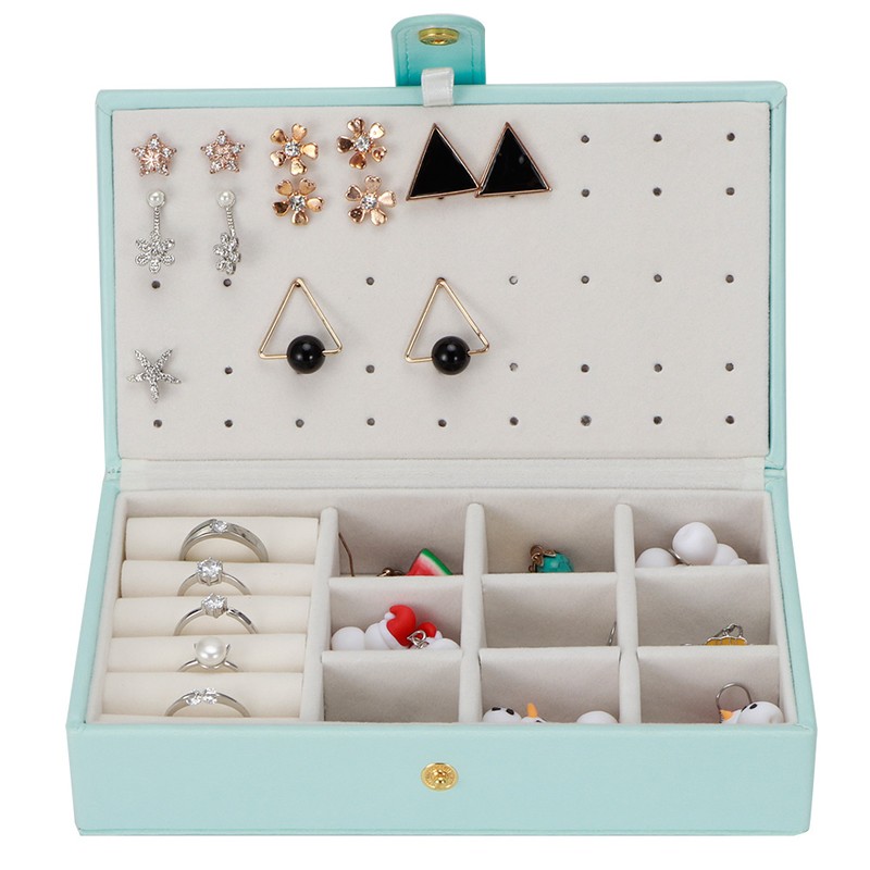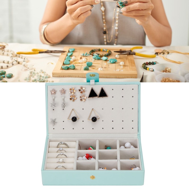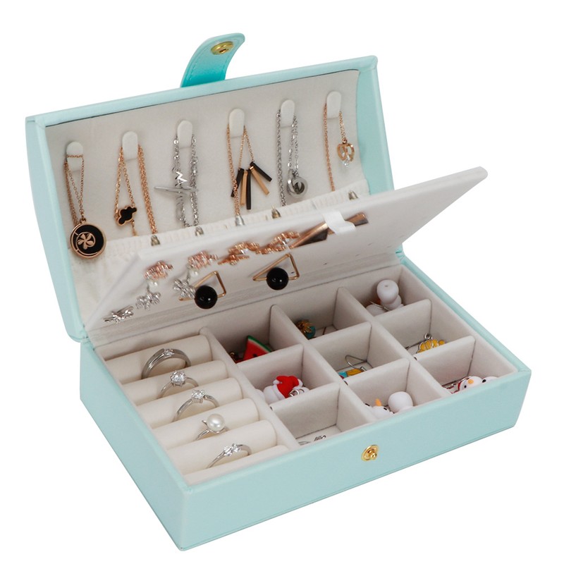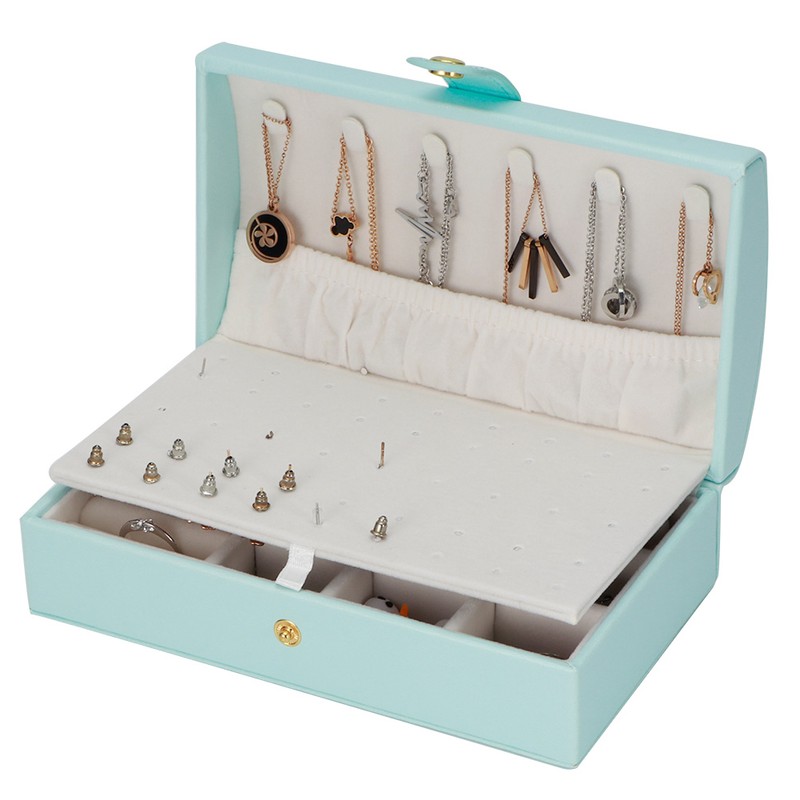 Portable Travel PU Leather Jewelry Box Multilayer Earring Rings Necklace Storage Case OrganizerLight Blue