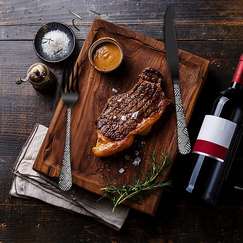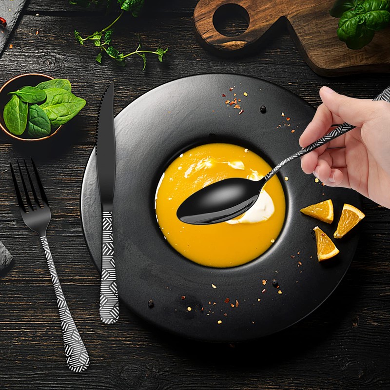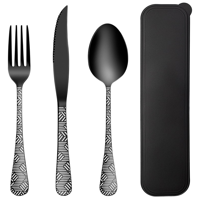 - 【3 PIECES Flatware Set】:1dinner fork, 1 dinner knife, 1 dinner spoon and 1 portable case. Beautiful silverware set