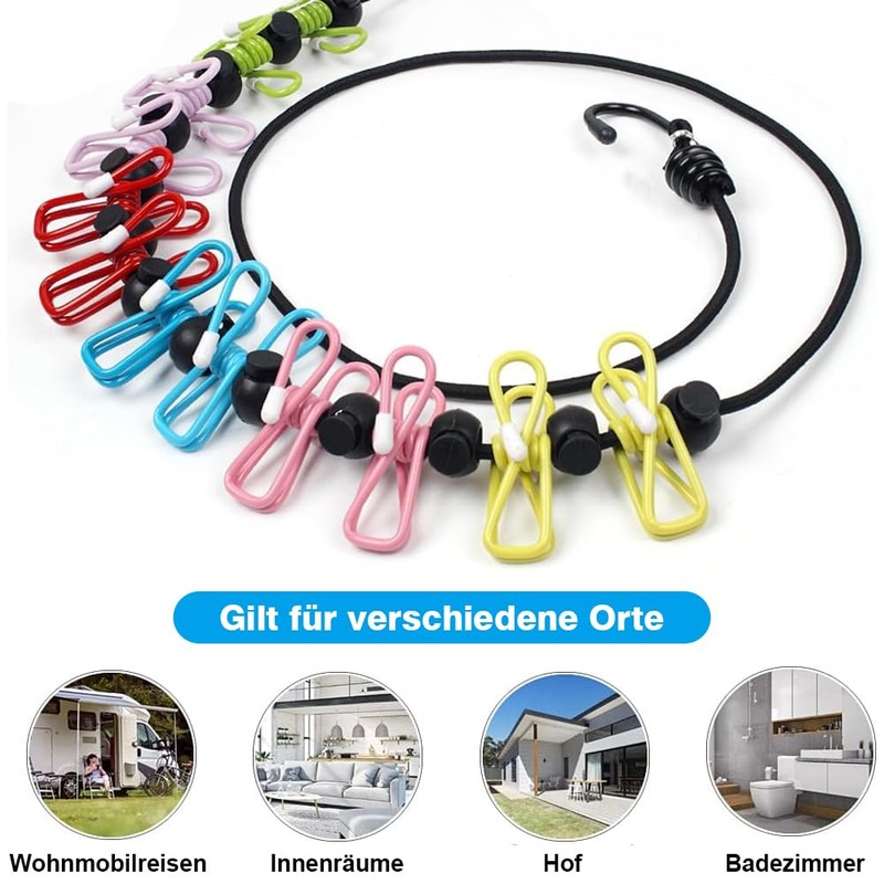 - Package includes: you will receive 2 pack travel washing lines. Each portable washing line with 12 colourful clips. Enough to meet your daily needs