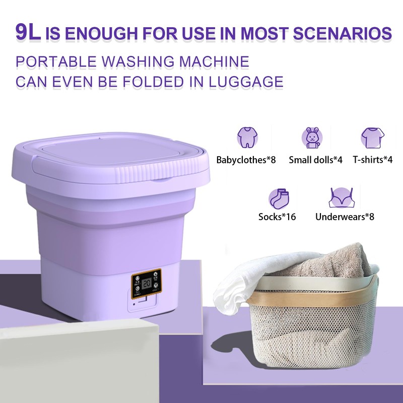 𝐋𝐚𝐭𝐞𝐬𝐭 Portable Washing Machine, 9L Large Capacity Portable Washer, Foldable Mini Washing Machine with LCD Panel for Deep Cleaning of Baby Clothes, Underwear, Socks and Other Small Clothes