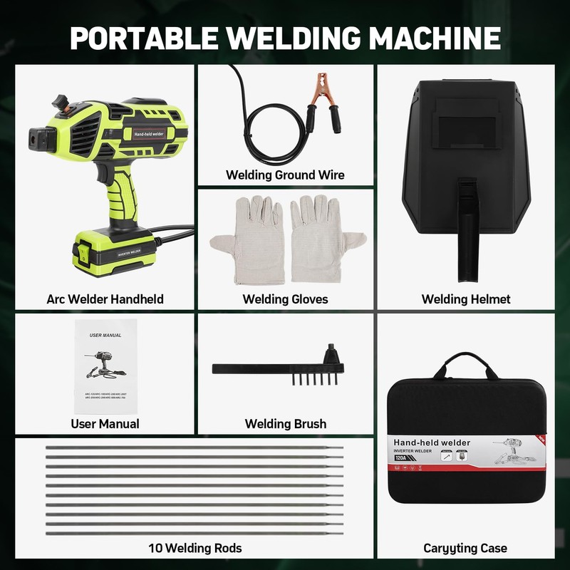 - 【Supports 1/16"-1/8" Welding Rods】This portable welder handheld is suitable for 1/16"-1/8" welding rod and comes with a hot arcing start function for easier arcing and perfect welding results, especially for welding enthusiasts and home repairs.