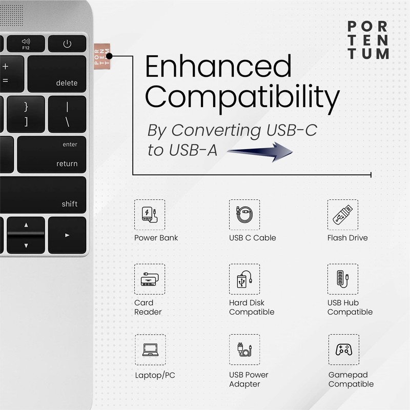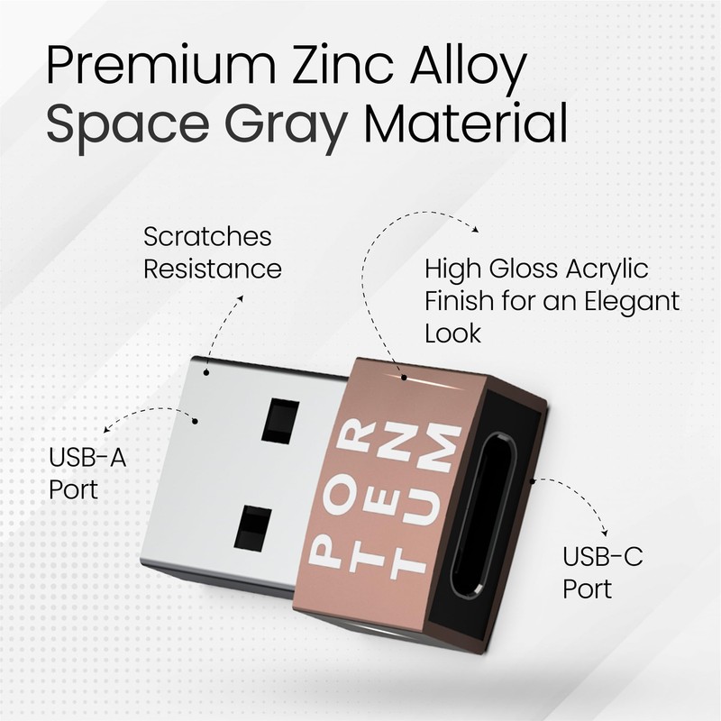 PORTENTUM USB to USB C Adapter - 480MB Speed - Premium Zinc Enables with High Heat Resistance - Adapter USB to USB C Only 4 Grams