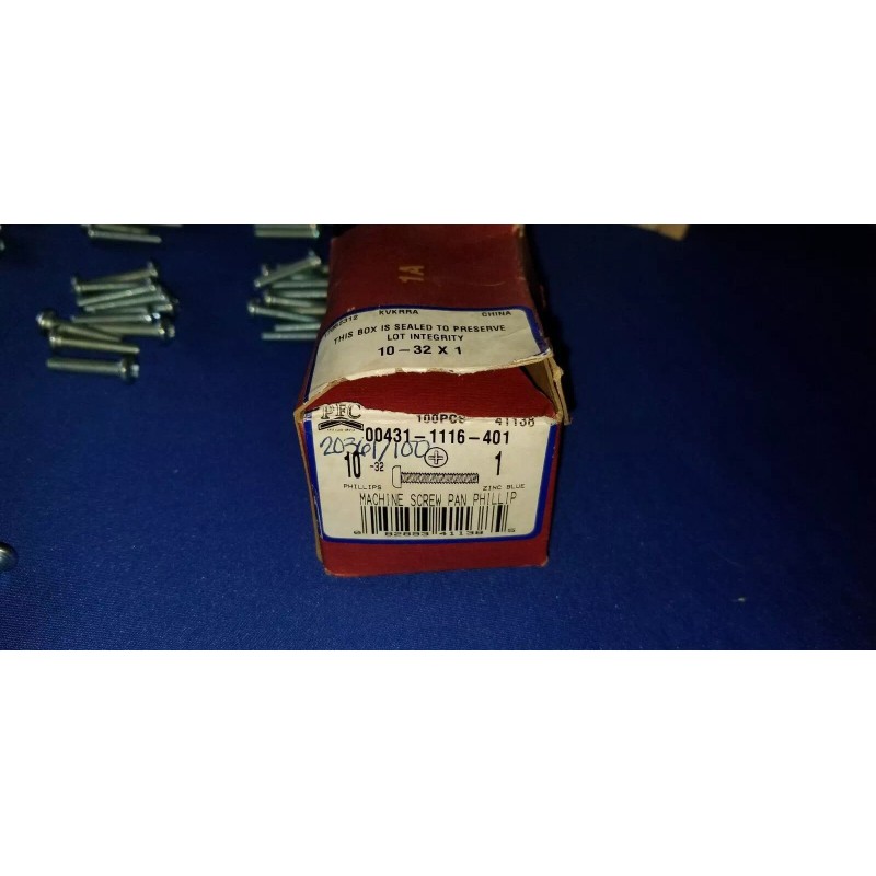 EPART0099 - PFC #10-32 x 1" Phillips Pan Head Machine Screw Zinc Blue BOX of 93