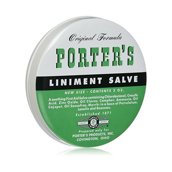 Porter's Liniment Salve was formulated in 1916 in Piqua, Ohio, by the George H. Rundle Company. The salve was sold door-to-door by traveling salesmen for many years. There has been no formal advertising for Porter's Salve. Sales have been generated mostly by word of mouth, from satisfied customers telling others of Porter's Salve's soothing, healing properties. The original name was changed from Porter's Pain King Salve to its current name, due to a request from the FDA. The reference to liniment was made because this salve was formulated from the Porter's original product, liquid Porter's Liniment. Recommended as a beneficial application for bruises, rough and cracked skin caused by inclement weather, insect bites, sunburn and local irritations, it is advocated for use on both man and beast alike. The salve has a drawing quality, which works particularly well on slivers of metal, wood, or glass, beneath the surface of the skin. This product, not highly advertised other than by word-of-mouth, has gained attention throughout the United States, Canada, and many countries abroad. Known for its healing powers, Porter's Liniment Salve, gets new customers by recommendations of satisfied users.