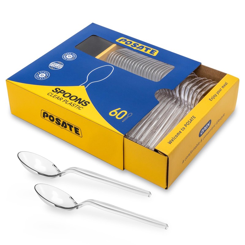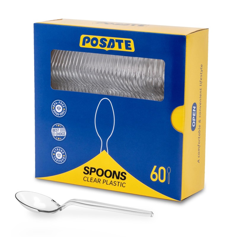 POSATE POSATE Heavy Duty Plastic Spoons, Clear Disposable, Pack of 60