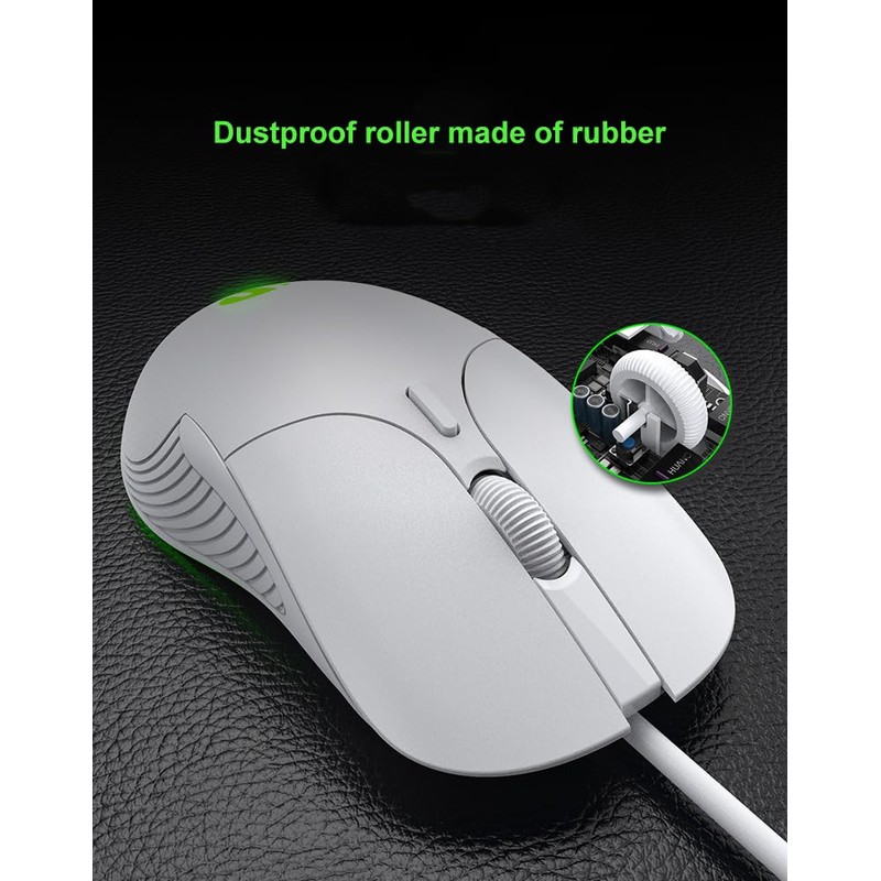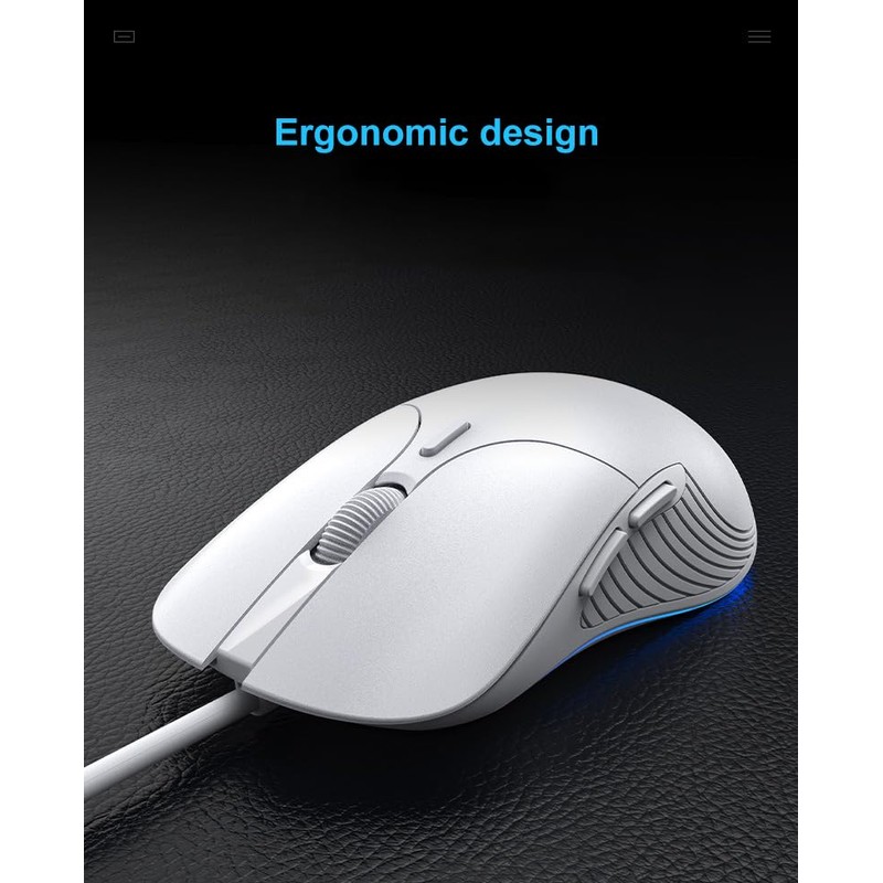 PoseiTun Wired Mouse with Ergonomic Design Silent USB Computer Mice White