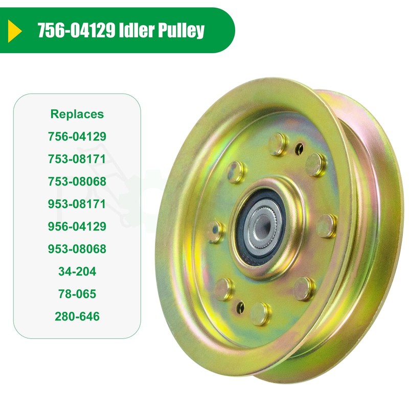 - Replaces 753-08171 Idler Pulley Kit, 753-08171 Cub Cadet 753-08171 Pulley, Idler Pulley 753-08171, MTD 75308171 Idler Pulley Kit, MTD-753-08171, 753 08171, 756-04129 Idler Pulley 756-04129, Cub Cadet 756-04129B Idler Pulley, Idler Pulley 756 04129B, Idler Pulley 756-04129B, Troy-Bilt 756-04129B, Craftsman 753-08068 Pulley, 75604129 Pulley, 75604129B, 956-04129, 75604129B, Oregon 34-204, 78-065, 280-646; Hardware Kit: Hex Bolt : 3/8"-16 x 1-3/4", Flat Washer: 3/8", Flanged Nylon Lock Nut: 3/8"-16