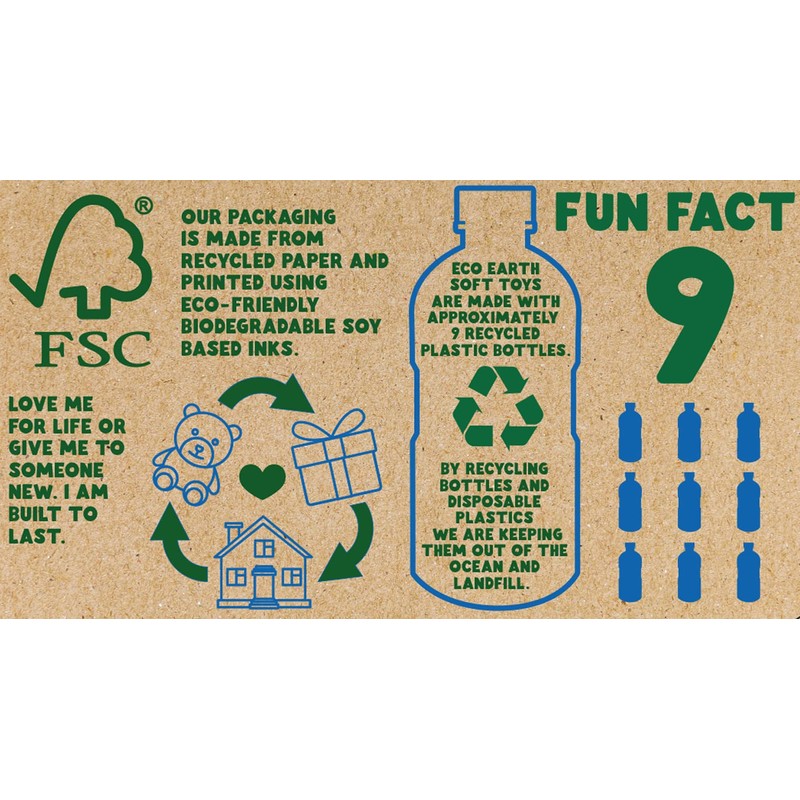 - These soft toys have been produced using the highest quality fabric and softest stuffing that have both been made using 100% recycled plastic bottles and food containers from post-consumer waste