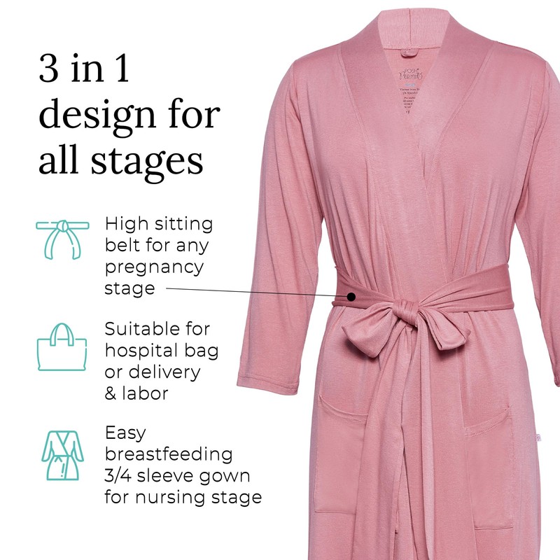 - ULTRA-SOFT ROBES - Wrap yourself in silky smooth natural maternity robe made out of Viscose from Bamboo fabric. Our beautiful maternity robe feature cleverly positioned ties, adjustable for the most comfortable fit throughout your pregnancy and as a new mom—perfect for hospital overnights, nursing your baby, or lounging at home and on vacation.