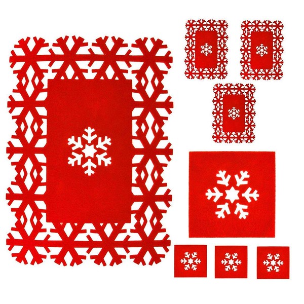 - Offered here for sale is a selection of Red felt snowflake table ware. A way to dress up your home in this festive season From everyday coasters to a dinner set for parties or Christmas day dinner itself