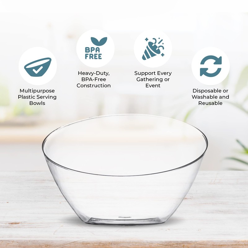 - Disposable Convenience: Say goodbye to the hassle of cleaning up after your event. These clear hard plastic buffet bowls are disposable, allowing you to enjoy the festivities without worrying about washing up afterward.