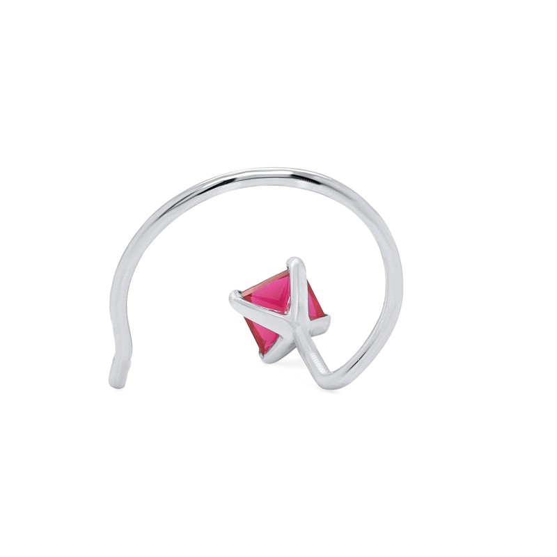 - Elegant Princess Cut Ruby – Features a 3mm princess-cut lab-created ruby gemstone, offering a vibrant red hue that adds a touch of sophistication and beauty to your nose ring.