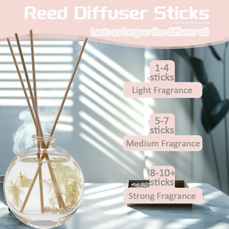 - 【Easy to Use】Ideal for reed sticks for oil diffusers and diffuser sticks refill. you can DIY your favorite fragrance with these diffuser sticks to refresh air in living room, kitchen, bathroom, bedroom, office, wedding, etc.These chic reeds not only diffuse your favorite fragrances but also serve as elegant decorative pieces, seamlessly blending with any interior to elevate your home's aesthetic