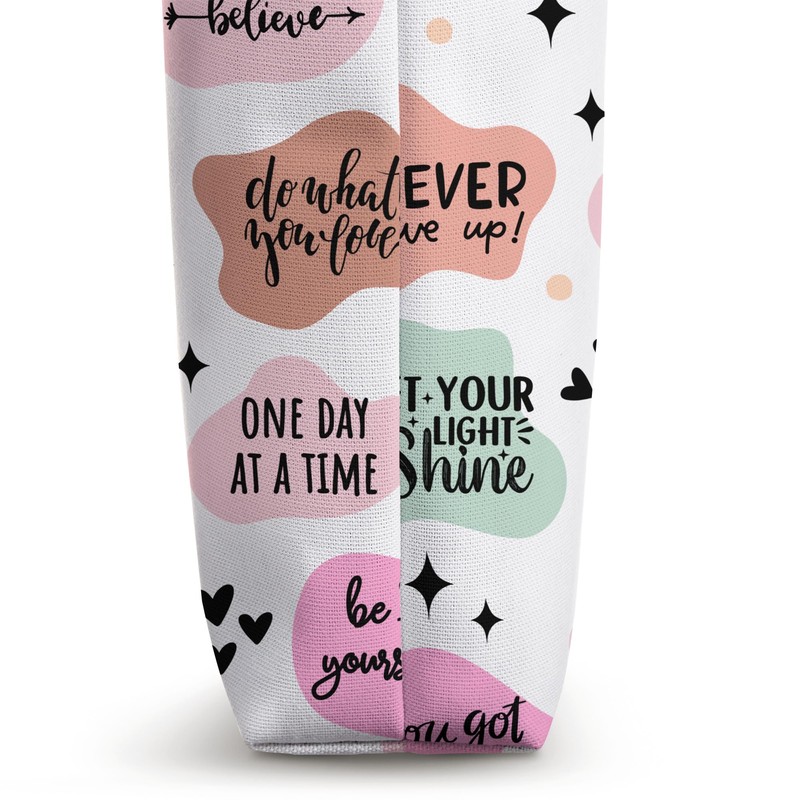 - Stay motivated with this beautifully design featuring a pattern of positive affirmations and inspirational quotes. This uplifting positivity is a daily reminder to embrace self-love and confidence