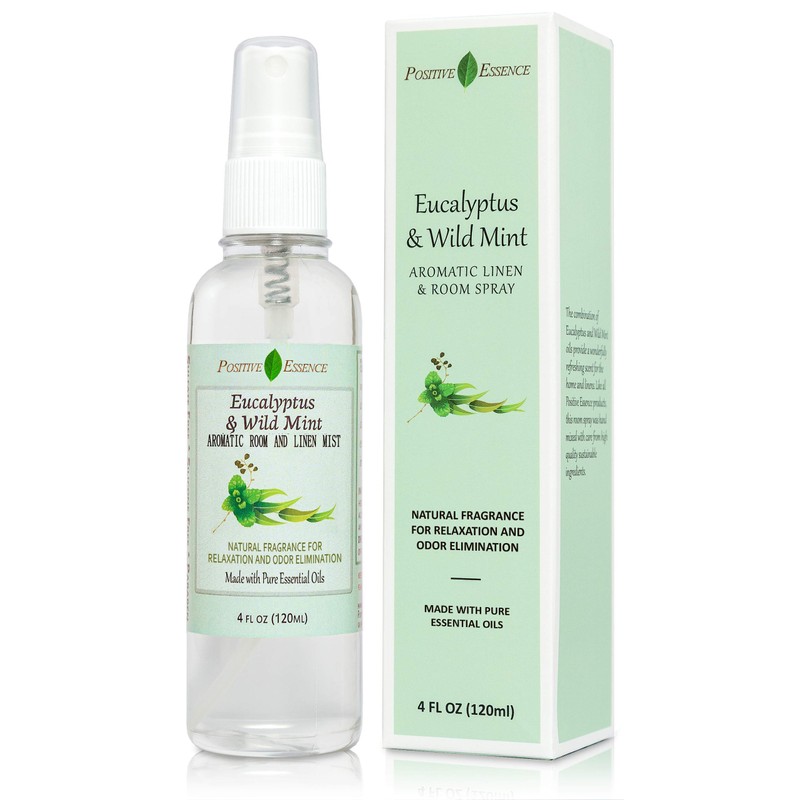 Positive Essence Eucalyptus & Wild Mint Room and Linen Spray, Natural Aromatic Mist Made with Pure Eucalyptus & Wild Mint Essential Oils, Refreshing Air Freshener Odor Eliminator