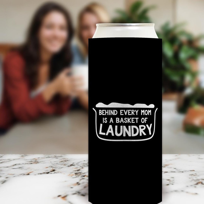 Positive Parenting Gifts For Mom Behind Every Mom Is A Basket Of Laundry 24-Pack Ultra Slim Can Drink Thermocoolers Party Pack